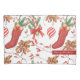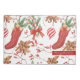 Beautiful and cosy Christmas scents watercolor clipart pattern featuring Christmas stockings in red, peppermint candies with Christmas red ribbon bow, cinnamon sticks, elegant Christmas tree decorations and rosehips branches.