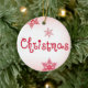 Celebrate the beauty of the season with this elegant Christmas ornament featuring a soft blush background, delicate red snowflakes, and a whimsical script “Christmas” design.