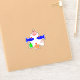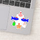 This awesome sticker features a collection of sea creatures wearing santa hats. The marine animals include a pair of blue fish, a cheeky looking little pink crab, a yellow starfish, a sparkly jellyfish and a cute little green turtle.