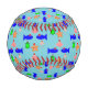 This awesome baseball features a collection of sea creatures wearing santa hats. The marine animals include a pair of blue fish, a cheeky looking little pink crab, a yellow starfish, a sparkly jellyfish and a cute little green turtle.