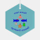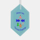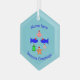 This ornament features a collection of sea creatures wearing santa hats. The marine animals include a pair of blue fish, a cheeky looking little pink crab, a yellow starfish, a sparkly jellyfish and a cute little green turtle. There is custom text so you can include the name of the recipient and a message. The default message reads Seasons greetings.