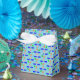 This awesome favour box features a collection of sea creatures wearing santa hats. The marine animals include a pair of blue fish, a cheeky looking little pink crab, a yellow starfish, a sparkly jellyfish and a cute little green turtle.