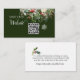 Front pine green background and greenery showcases your QR code. Reverses to our white with clarification of website url and decorative holly sprig.
