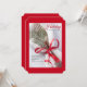 A festive, holiday invitation to dinner featuring a white napkin, spoon and fork tied with a red ribbon and embellished with a sprig of pine and tiny pinecone. (<a href="https://www.freepik.com/free-vector/christmas-menu-template_3346036.htm">Designed by Freepik</a>). <br/><br/>The card is easy to customise with your wording, font, font colour, paper shape options and choice of six paper types.<br/><br/>Not exactly what you're looking for? All our products can be custom designed to meet your needs at no extra charge.<br/><br/>Simply contact us at heartfelthelper@gmail.com.<br/><br/>Coordinating products available: Just ask us!