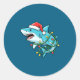 Christmas Shark Santa Hat Wrapped In Lights Funny Classic Round Sticker