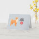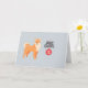 Holiday greetings from your favourite dog breed. Folded Christmas card features Shiba Inu dog with "Merry Christmas" text and red Christmas ornament.