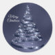 Christmas Shiny Blue Ribbon Tree Sparkle Classic Round Sticker