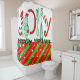 Christmas Shower Curtain, Red Green Stars Stripe Shower Curtain