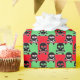 Fun pattern of black skulls on red and green gift wrap. Unique wrapping paper for your unique gifts! From Scarebaby Design.