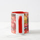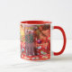 A Christmas Sled with a Wreath close up that's bright and colourful that's on a Coffee Mug (Cup).