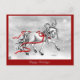 Original drawing by Sandra Gale of a white and dappled grey horse trotting through the winter snow. A bold red ribbon trails behind in the wind and Christmas bells adorn his harness. Great design for horse lovers and makes a wonderful holiday design for any product, card or print.