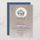 Christmas Snow Globe Holiday Open House Party Invitation from Ricaso - featuring a gold and blue house with a deer in front inside a snow globe with a small ribbon on the front