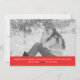 Celebrate the holidays with your friends and family by sending them a beautiful, Christmas photo card. The modern Christmas photo card design features elegant white typography along the bottom of the card, a snow border overlay, custom text on front and back, and a placeholder for two full-size images of your family. The back features a red band at the bottom where you can add a custom holiday greeting.