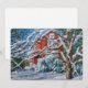 Charming painting reproduction of a cosy red house and freshly fallen snow — lovely flat card for Christmas — or year-round. By landscape painter L. Diane Johnson.