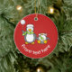 Christmas Snowballing penguins Ceramic Tree Decoration