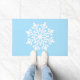 Christmas doormat shown in a light blue colour with a festive snowflake print.