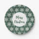 Christmas Snowflake Green Minimalist Holiday Party Paper Plate