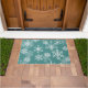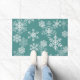 Doormat shown with a Teal background colour and a festive Christmas holiday snowflakes print.