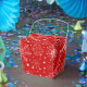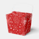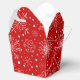 This favour box is shown in a festive Christmas holiday snowflakes print in the colour red.