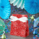This favour box is shown in a festive Christmas holiday snowflakes print in the colour red.