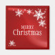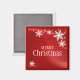 Customisable Christmas magnet with illustration of white snowflakes on red.