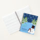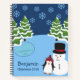 Celebrate the Christmas season with this personalised holiday notebook. Notebook features a penguin in a cosy hat, a smiling snowman, trees covered in snow, falling snowflakes, and an icy pond. In the bottom left you may customise with your name or your child's name as well as the holiday and the year. This notebook will be treasured for many winter seasons to come!