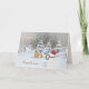 Christmas snowman and deer in winter woods holiday card