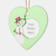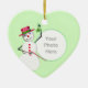 A Christmas heart-shaped photo ornament with a snowman holding mistletoe over your photo! Customisable text at the back says "Merry Christmas".