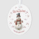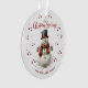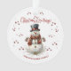 A bright and festive Christmas Snowman Holiday Ornament with your Family Name designed with a jolly Snowman dressed in black hat with colorful scarf and ringing bells on one side and Three Cute Little Snowmen on the reverse. The text includes: Merry Christmas and Your Family Name on the front; and Happy New Year on the reverse. To personalize, simply insert your text into our template, replacing the sample. This ornament has a matching Christmas Card, Christmas Party Invitation and Party Accessories.
