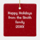 at christmass as a hanging decration for the chritmass tree.. its white porcline or cramic but very well made with added photo on one side.. also has a lovley red bag to keep it in.. execlent printed text in bold and black stands out well aganst the blue background of the photo.