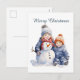Christmas snowman kids add text watercolor Holiday Postcard