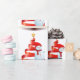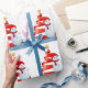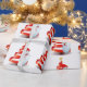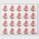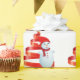 Cute Christmas design featuring an adorable Christmas snowman cartoon with blue eyes, red scarf and an abstract red ribbon Christmas tree behind.