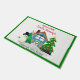 Welcome guests to your Christmas holiday open house with this personalised doormat. This doormat features one of my original collage art designs of a graphicly designed house, snowman, and Christmas tree. Personalise this doormat with your own text.