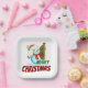 Cute blue snowman with Christmas tree and text MERRY CHRISTMAS