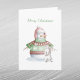 Christmas Snowman Rabbit Watercolor Holiday Card