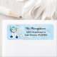 Christmas Snowman throwing snowball blue Snowflake Background Christmas Card Return address labels.