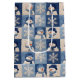 An enchanting pattern filled with delightful snowmen and sparkling snowflakes, beautifully set against a blue and white quilt background