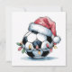 Celebrate the holidays with this charming watercolor illustration featuring a festive soccer ball wearing a Santa hat and adorned with colourful Christmas lights. Perfect for soccer players, coaches, fans, and anyone who loves combining their passion for the beautiful game with Christmas cheer. This unique greeting card design captures the spirit of both soccer and the holiday season, making it an ideal choice for sending warm wishes to fellow soccer enthusiasts. The whimsical artwork showcases a classic black and white soccer ball transformed into a delightful Christmas character, complete with fluffy white trim and a jolly red Santa hat. Whether you're celebrating with your soccer team, sending holiday greetings to sports friends, or looking for the perfect card for a soccer-loving family member, this design brings together two beloved themes in one memorable greeting.