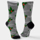 Christmas mistletoe socks with text with any background colour you select at the edit prompt. Designed by HAMbyWhiteGlove for all your custom, personalised and special gifts! Shown with a grey background.