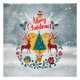 This is a beautiful Christmas design with deer, birds, snowflakes stars, mistletoe, Christmas tree and other winter and celebration elements. It is a magical winter ambience bathed in pearly snow.