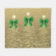 Christmas Sparkling Trees Gold Faux Green Bow Fleece Blanket