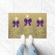 Christmas Sparkling Trees Gold Faux Purple Bow Doormat
