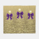 Christmas Sparkling Trees Gold Faux Purple Bow Fleece Blanket