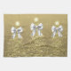 Christmas Sparkling Trees Gold Faux Silver Bow Tea Towel