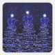 Christmas Sparkling Trees Navy Blue Faux Bow Square Sticker