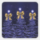 Christmas Sparkling Trees Navy Blue Faux Gold Bow Square Sticker