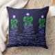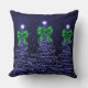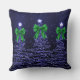 Christmas Sparkling Trees Navy Faux Green Bow Cushion