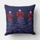 Christmas Sparkling Trees Navy Faux Red Bow Cushion