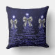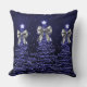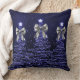 Christmas Sparkling Trees Navy Faux Silver Bow Cushion