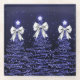 Christmas Sparkling Trees Navy Faux Silver Bow Glass Coaster